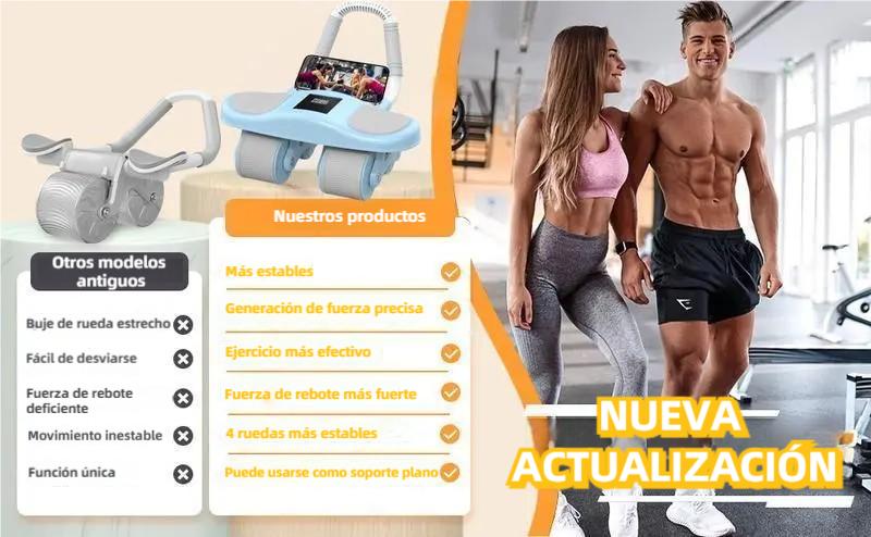 Rueda Abdominal de 4 Ruedas para Hombres y Mujeres – Equipo de Fitness para el Hogar con Soporte de Codos, Rebote Automático, Entrenamiento de Abdomen y Vientre Plano
