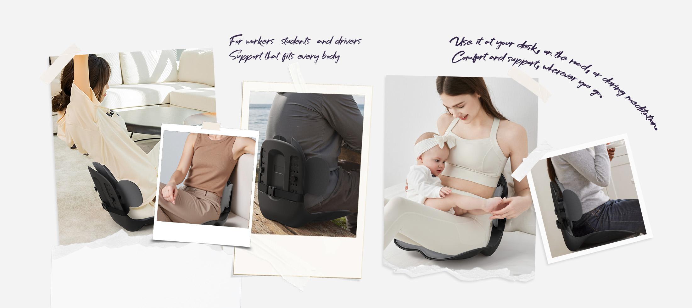 ¡Dile adiós al dolor de espalda y a la mala postura! El soporte lumbar dinámico Cabevibe M3 incorpora el diseño patentado SpineSeat™, con zonas adaptativas que se mueven al compás de tu cuerpo, aliviando la tensión en la zona lumbar y favoreciendo una postura correcta, ya sea que estés trabajando, jugando o conduciendo.